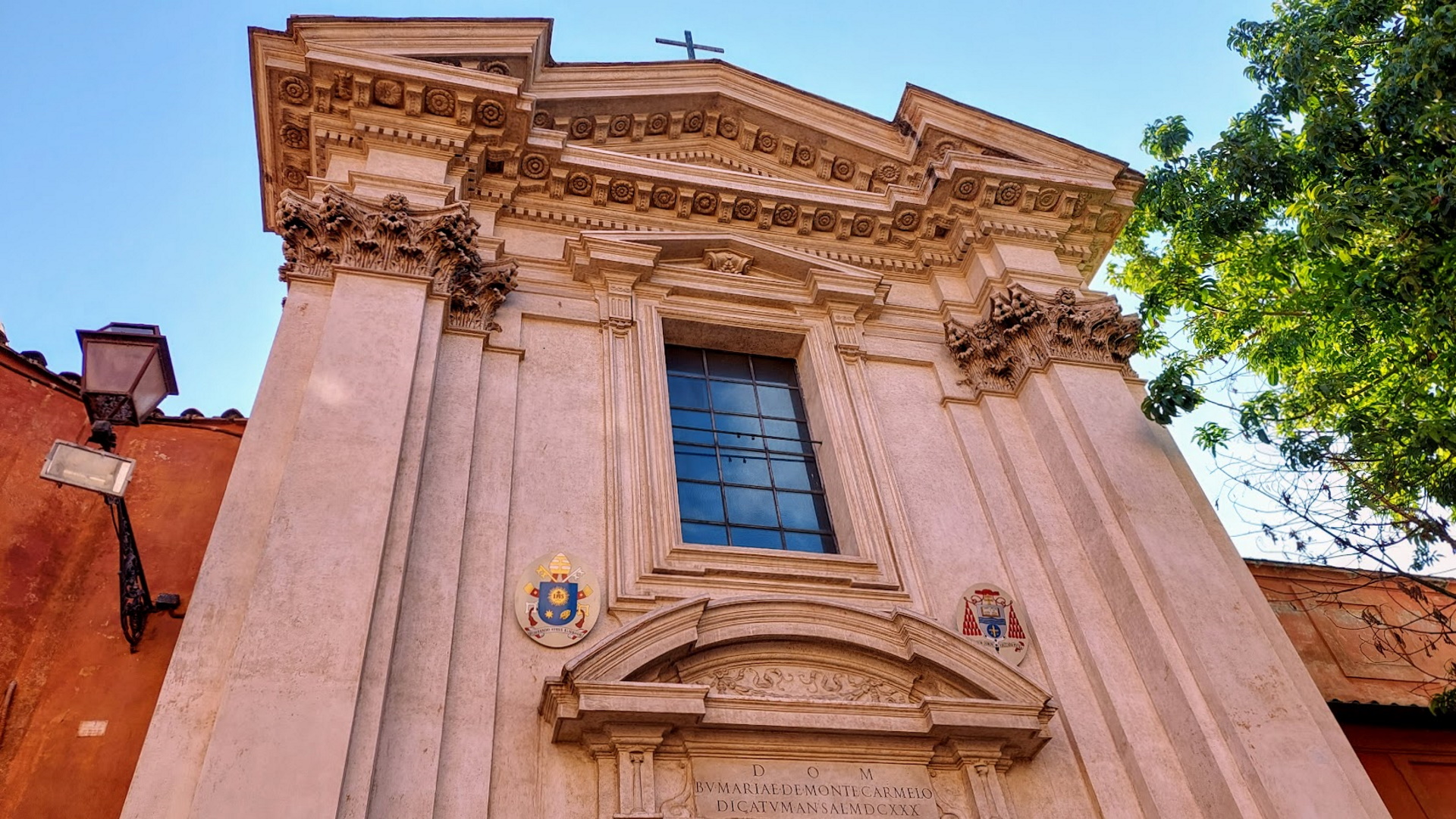 Overlooking a small but lively square in the Rione Trastevere, the church stands close to the foundation site of the older San Lorenzo in Janiculo or de curtibus. In the early 17th century, the little church was in poor condition: the Chapter of the nearby Basilica of Santa Maria in Trastevere then granted it to a wealthy and devout butcher called Agostino Lancellotti, who undertook to restore it, re-dedicated it to the saint hermit Giles and gave it to the Discalced Carmelite nuns. In 1630, through the generosity of Prince Filippo Colonna, the nuns decided to rebuild the church from the ground up, also dedicating it to Our Lady of Mount Carmel, as can still be read on the entrance portal: “B.V. Mariae de Monte Carmelo dicatvm a. salutis MDCXXX”.