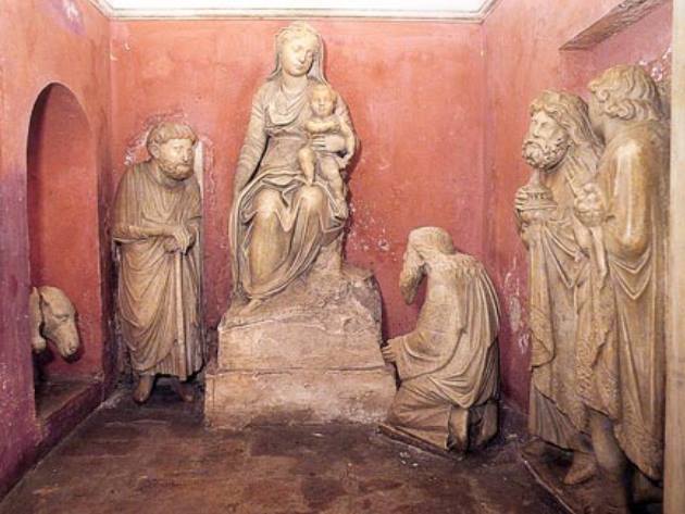 Die erste unbelebte Krippe der Geschichte, die Skulpturengruppe, wurde 1288 von Papst Nikolaus IV. bei dem genialen toskanischen Bildhauer, der seine Fähigkeiten in der Werkstatt von Nicola Pisano perfektionierte, in Auftrag gegeben. Das schlichte und elegante Werk besteht aus fünf Marmorfiguren: Josef, Maria mit dem Jesuskind im Arm, die Heiligen Drei Könige – zwei stehend in einem Block und einer kniend – , der Ochse und der Esel. Die wunderbare Komposition wird in der Sixtinischen Kapelle im Inneren der Basilika Santa Maria Maggiore aufbewahrt, die symbolisch als „Bethlehem des Westens“ bezeichnet wird und auch unter dem Namen Sancta Maria in Praesepium bekannt ist, da dort die heiligen Reliquien der Wiege des Jesuskindes aufbewahrt werden.