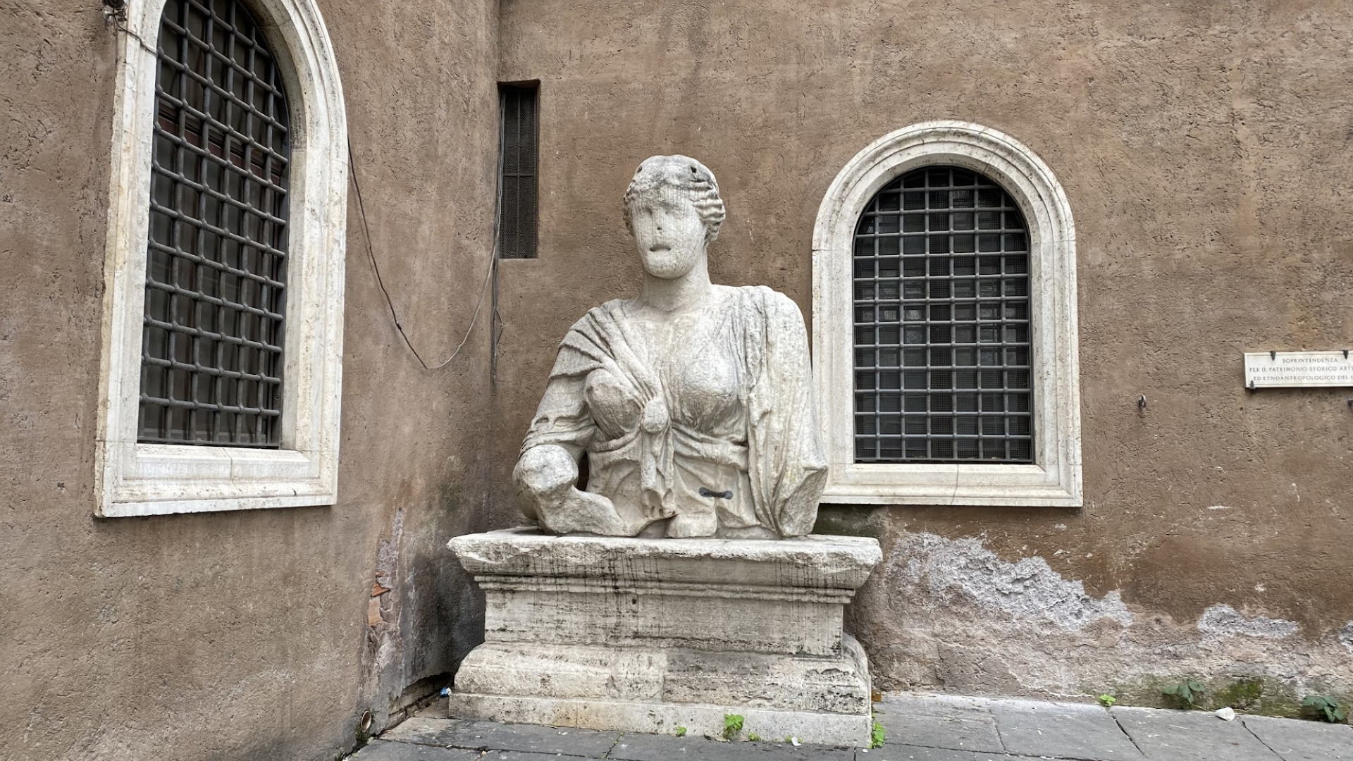 Auch heute noch ist ihre Identifizierung nicht ganz sicher: sie könnte Faustina (die Frau des Kaisers Antoninus Pius) oder die Göttin Isis (oder eine ihrer Priesterinnen) wegen des charakteristischen Knotens des Gewandes auf ihrer Brust darstellen. Manche behaupten, dass der berühmte Marmorfuß in der Nähe der Kirche Santo Stefano del Cacco auf dieselbe Statue zurückgeht: sowohl das Gewand als auch die kaum noch sichtbare Sandale auf dem Fuß würden in der Tat zur Aussteuer der Priesterinnen der Isis gehören, deren Kult im nahe gelegenen Iseum Campense gefeiert wurde.