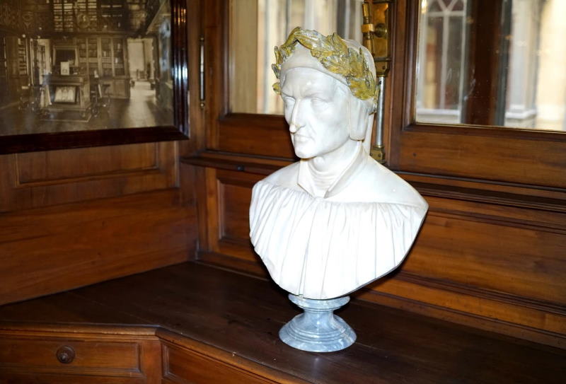 A historic Roman residence overlooking the Sacred Area of Largo di Torre Argentina, of which it forms an elegant architectural backdrop. Enlarged and enriched by its numerous owners over the centuries, then partially demolished in the late 19th century when Corso Vittorio Emanuele II was opened, the building was finally purchased in 1905 by Marco Besso. Here he lived with his family, transforming the building a few years later into the seat of the foundations named after him and his wife Ernesta. A financier, refined bibliophile and writer, Marco Besso was also a passionate scholar of Dante: the magnificent library that constitutes the heart of the house boasts one of the most important and richest collections of Dante’s editions. In an environment made warm and evocative by the wooden furnishings made in 1907, we can find rare 15th- and 16th-century editions and many modern Italian and foreign printed books of the Comedy, as well as critical works, bibliographic repertoires and magazines. If you think it is not enough, just look around you: the image of Dante is everywhere, in the bronze and alabaster reproduction of the monument dedicated to him in Trento, in the gold effigies on the backs of the imposing leather armchairs, in the marble bust of the poet and finally in the copies of the oil cruet and the votive lamp from his tomb in Ravenna.