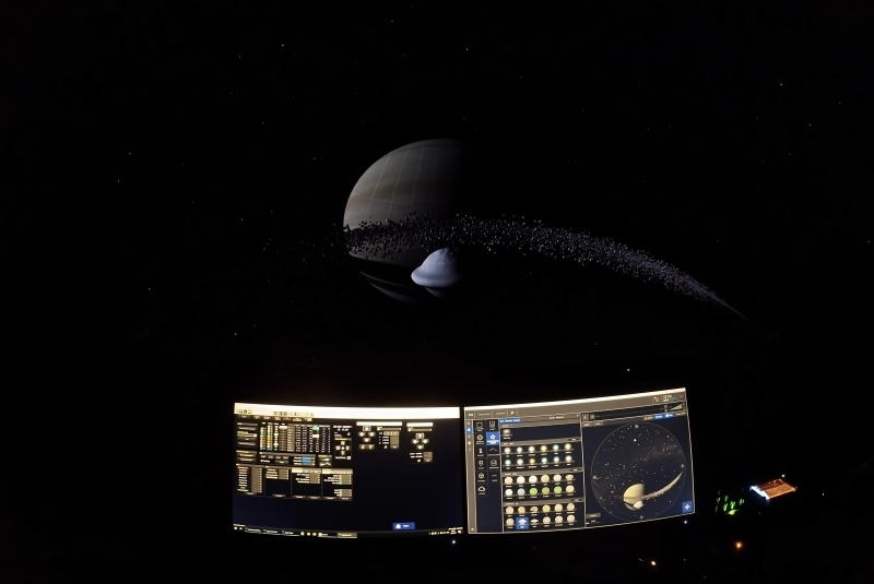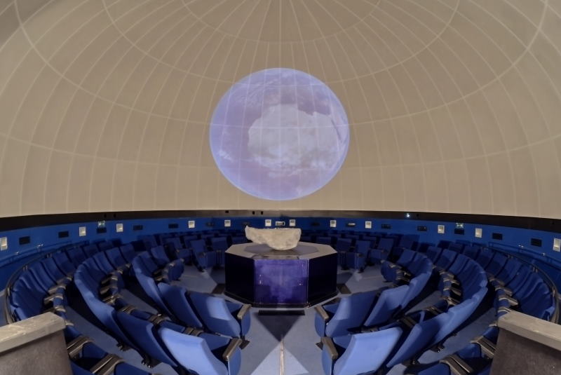 The dome of the Planetarium - a hemispherical screen of 300 square meters and 14 meters in diameter - offers a very engaging vision. Combined with the new comfortable reclining armchairs, arranged in a circular layout, it enhances the experience of the immersive "journey" avoiding the cinema effect.