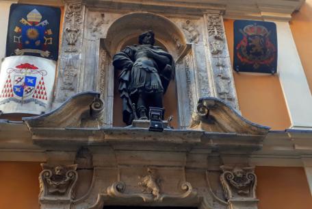 The Church of the Nativity of Jesus, which is located near Piazza Navona, overlooks Piazza Pasquin