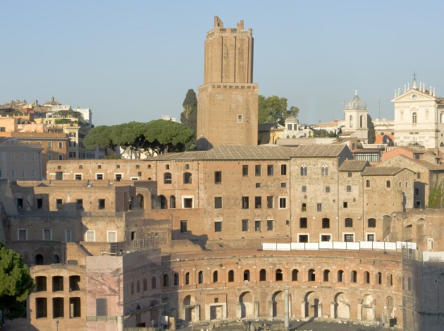 Continuando hacia Plaza Venecia, a vuestra derecha encontraréis los famosos Mercados de Trajano, situados entre el Foro de Trajano y las laderas del Quirinal, considerados antiguamente una de las maravillas del mundo clásico. El conjunto arquitectónico era un auténtico barrio por el que pasaba la Vía Biberatica, llamada así a causa de las tabernas que albergaba y por las tiendas de pimienta y especias. En este mercado se podía adquirir prácticamente de todo: pescado fresco, especias mediorientales, fruta, flores, sedas y telas, como en un moderno centro comercial.