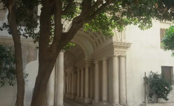 Among the many wonders of the Baths of Diocletian, a lesser-known masterpiece is the wonderful trompe-l’œil painting in the courtyard of Michelangelo’s cloister, and realized in 1855 by Filippo Balbi, a Neapolitan artist. A Carthusian monk comes out from a fake door: his name is Fercoldo and he was a 13th-century well-known French lawyer and judge who chose monastic life after the death of his wife. Painted in full size, he peers at us with a penetrating gaze, pointing his finger at the portrait of his son, Pope Clement IV. Around him are objects of absolute truthfulness and daily utility, a skull and a crucifix, an hourglass, a rosary, a candle, nibs and an inkwell, books and a pair of “pince-nez” glasses. To top it all off, there’s a crouching kitten looking at the monk in a further perspective game of looks.