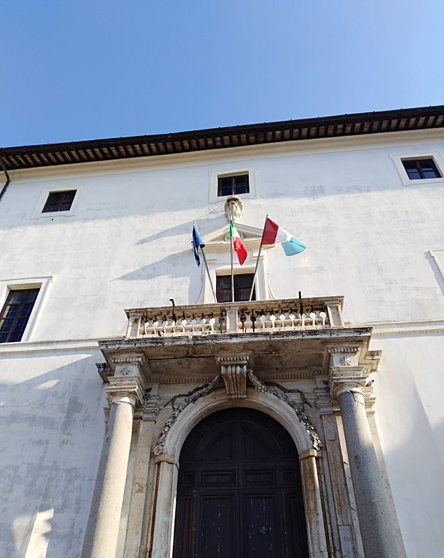The first thing that strikes when arriving in front of the building is the color of the facade: an original air-like color, a mix of gray-blue that has the effect of dematerializing the building and giving it a sort of abstract dimension. A choice that was later used a lot throughout the seventeenth century.