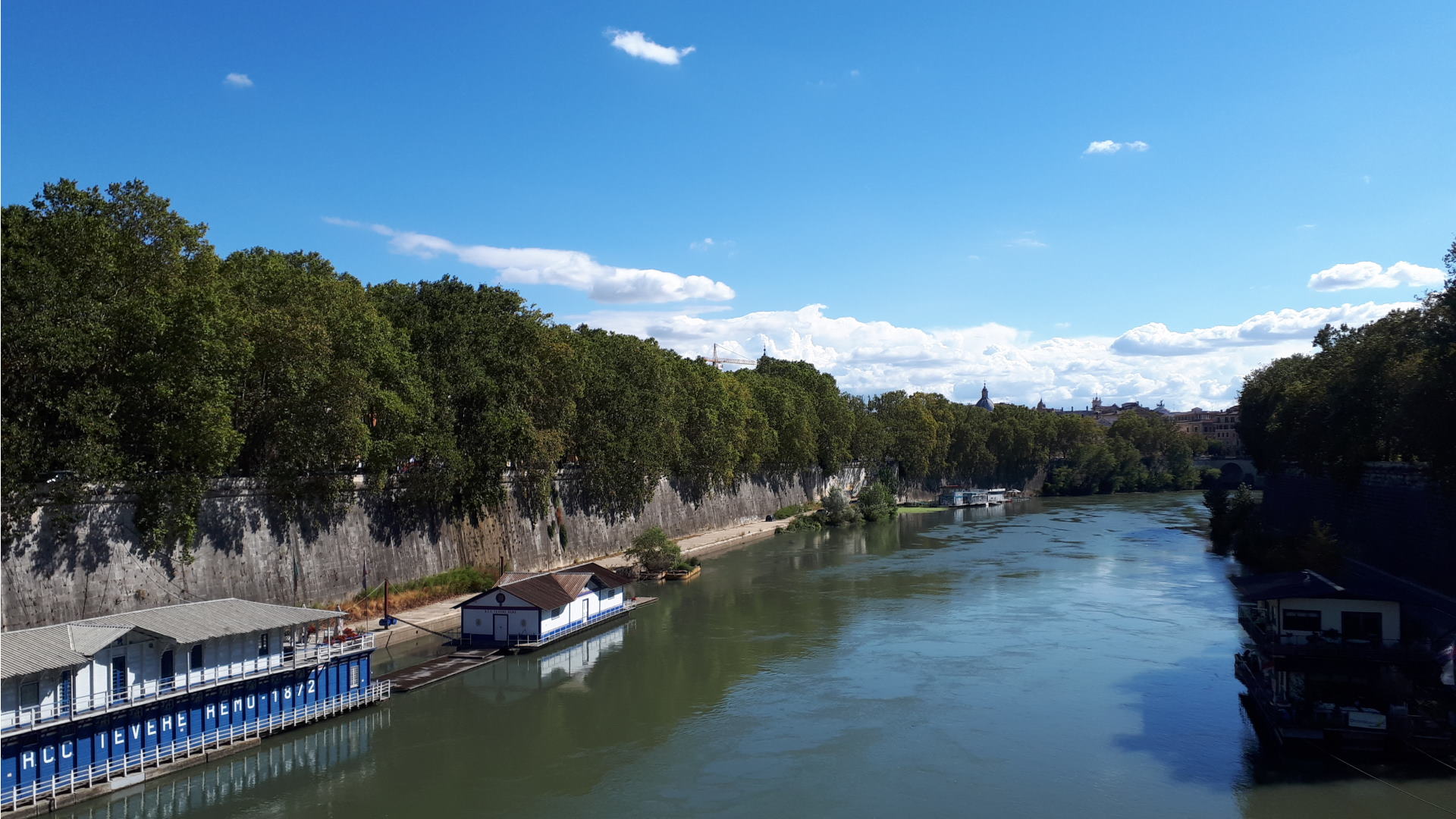 Aujourd’hui, nous voyons le fleuve couler tranquillement, mais il y a encore quelques siècles, il grouillait de vie et était fréquenté par des porteurs d’eau, des teinturiers, des passeurs ou des bateliers, des pêcheurs, des marins, des constructeurs de bateaux, des renaioli (ouvriers qui ramassaient du sable), des fiumaroli (bateliers du Tibre)... La liste pourrait être longue et, bien que cela puisse nous surprendre, parmi les métiers les plus étroitement liés au Tibre, il y avait aussi celui du meunier. Ce qui caractérisait autrefois le paysage fluvial de Rome, c’étaient les moulins à eau flottants, généralement appelés molini ou mole. Ils étaient si nombreux qu’ils faisaient l’objet de dessins, de peintures et de cartes, et suscitèrent l’étonnement d’un voyageur espagnol du début du XVe siècle, qui, dans sa description de la ville, déclara qu’en raison de leur grand nombre, les deux rives du Tibre semblaient presque se rejoindre. Le plus grand et le plus célèbre était la Mola dei Fiorentini, ainsi nommée d’après l’église de San Giovanni dei Fiorentini au début de la Via Giulia et toujours présente dans la toponymie, mais le plus grand nombre de moulins se trouvait près de l’Isola Tiberina. À tel point que l’un de ses ponts, le Ponte Cestio, a été populairement rebaptisé « Ponte Ferrato » (pont de fer), précisément en raison des innombrables chaînes en fer qui l’entouraient et qui servaient à accrocher les moulins à la terre ferme.