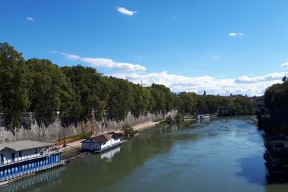Risalgono all’Ottocento le ultime grandi alluvioni. Le lapidi in via dell’Arancio e in via Canova ci riportano alla piena del 1805, quando il fiume invase le zone da Ripetta al Corso, arrivando a piazza Navona, alla Lungara e al Ghetto. L’acqua superò i 16 metri di altezza anche il 10 dicembre 1846, come testimonia la lapide nel cimitero sotterraneo della chiesa di Santa Maria dell’Orazione e Morte in via Giulia. La piena più tragica fu però sicuramente quella tra il 26 e il 29 dicembre 1870, a tre mesi dalla breccia di Porta Pia, quando le acque superarono i 17 metri. La violenza del fiume, attestata da una quarantina di scarne lapidi, le vittime e i danni suscitarono un’impressione tale da far venire per la prima volta a Roma il Re Vittorio Emanuele II e da spingerlo ad adottare rimedi risolutivi. Su progetto di Raffaele Canevari, si decise così di costruire alti muri di contenimento: terminati definitivamente nel 1926, i cosiddetti muraglioni del Tevere misero fine al continuo e periodico pericolo, modificando però radicalmente tutto l’ambiente tiberino e distruggendo paesaggi e ambienti unici come i porti di Ripetta e Ripa Grande. La lapide più recente è nel portico di San Bartolomeo all’Isola, con la scritta “Alluvione del 17 Decem 1937” su una semplice riga orizzontale: i nuovi muri di sponda contennero molto bene la corrente e, pur raggiungendo comunque livelli record, le acque causarono soltanto modesti allagamenti.