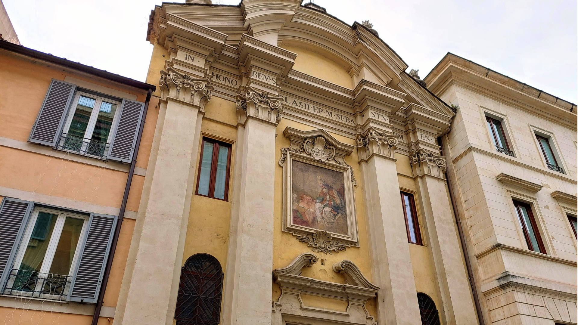 Un cartiglio in lingua armena, collocato sopra il portone, accoglie i visitatori della bella chiesetta affacciata su via Giulia, l’elegante rettifilo del Rione Ponte progettato nel 1508 da Bramante per papa Giulio II. La chiesa ha però origini ancora più antiche, che risalgono forse al X secolo, e un’iscrizione custodita al suo interno e datata 1072 ne ricorda la ricostruzione a opera dell’abate Domenico dell’allora attiguo piccolo monastero benedettino.