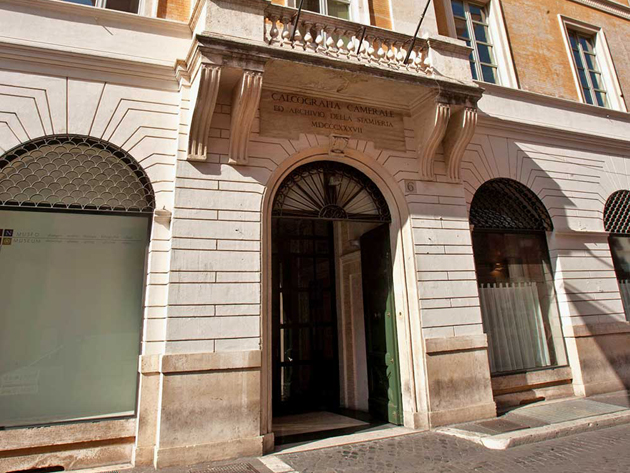 Il Palazzo della Calcografia caratterizzato dalla sobria facciata neoclassica del Valadier, conserva una vasta collezione calcografica che ha origine dalla raccolta dei De Rossi, famiglia di stampatori operante nell’ambiente romano del XVII secolo. Tale raccolta, in cui erano già confluite altre dei più importanti editori romani del ‘500, fu acquistata nel 1738 dallo Stato Pontificio che vi istituì la Calcografia Camerale. Divenuta Regia nel 1870 e Nazionale con la nascita della Repubblica, la collezione custodisce 23.000 matrici che vanno dal XVI al XX secolo; oltre al Fondo De Rossi sono presenti i fondi Canova, Camuccini, Volpato, Carrà e Morandi; vi sono anche duemila lastre di rame di grandi incisori come Piranesi e Ingres. Nel palazzo sono esposte stampe, strumenti per l'incisione, macchinari e antichi torchi. La stamperia, pur non svolgendo attività continua come un tempo, è tuttora attiva.