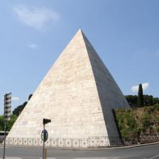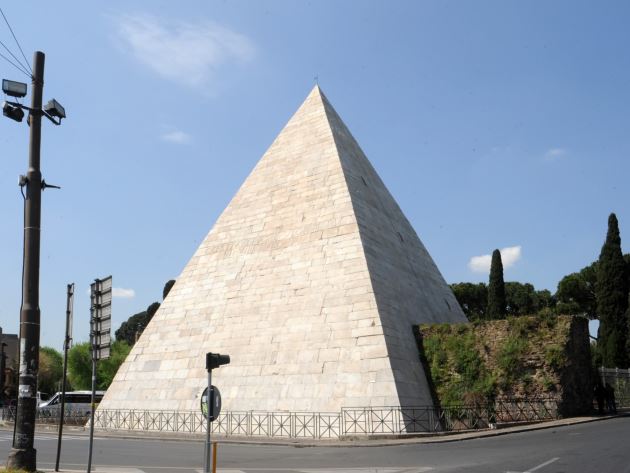 Uno dei personaggi che come sepolcro scelse una piramide fu Caio Cestio, pretore, tribuno della plebe e membro del Collegio dei Septemviri Epulones, magistrati che avevano il compito di organizzare i banchetti sacri in onore delle più importanti divinità, come si evince da una delle iscrizioni sulla facciata. La facciata presenta un’altra iscrizione che ci dice che i lavori di costruzione dovevano durare al massimo 330 giorni, pena la perdita dell’eredità da parte dei familiari. La tomba fu costruita lungo la via Ostiense, tra il 18 e il 12 a.C.. Quattro secoli più tardi, su iniziativa dell’imperatore Aureliano, fu inglobata nella nuova cinta muraria.