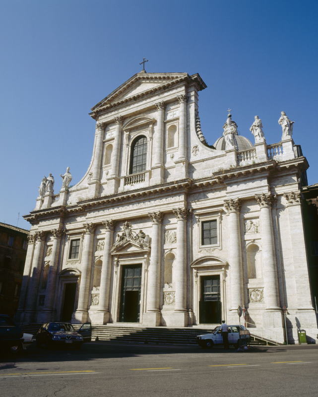 In quello che un tempo era il quartiere abitato da ricche famiglie toscane, la basilica di San Giovanni dei Fiorentini venne crescendo nell’arco di ben tre secoli, dal 1519 fino al 1734. Al concorso bandito all’inizio del Cinquecento da Leone X, che riprese il progetto affidato da Giulio II a Bramante e interrotto per la morte del pontefice, parteciparono i migliori architetti dell’epoca: a prevalere fu Jacopo Sansovino, ma presto gli subentrarono Antonio da Sangallo il Giovane e poi Giacomo Della Porta. Nel 1609 entrò in scena Carlo Maderno che eresse, tra l’altro, la caratteristica cupola impostata su un alto tamburo ottagonale e conclusa da una graziosa lanterna. Terminata nel 1614, la cupola slanciata testimonia l’equilibrata e raffinata sensibilità di Maderno: fedeli al loro spirito dissacratore, però, i romani la soprannominarono il “confetto succhiato” per l’immagine suggerita dalla sua foggia allungata. E sotto di essa riposa il suo autore, sepolto insieme a Francesco Borromini all’interno della chiesa.