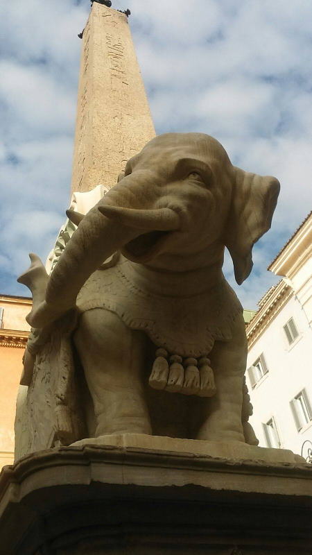 C’è un elefantino di pietra sul sagrato della chiesa di Santa Maria sopra Minerva, costruita sui resti di un tempio dedicato alla dea della sapienza. Nel 1665, nel giardino del vicino convento era stato trovato un piccolo obelisco che papa Alessandro VII Chigi volle sistemare nella piazza. Per realizzare il basamento, dopo aver interpellato diversi architetti tra cui il domenicano Giuseppe Paglia, fu chiamato Gian Lorenzo Bernini: tra i tanti disegni presentati, il papa scelse l’animale che rappresentava l’idea di forza. Bernini avrebbe voluto che il peso dell’obelisco gravasse interamente sulle zampe dell’elefante ma i domenicani, con in testa Padre Paglia, convinsero il papa che in questo modo la stabilità dell’obelisco sarebbe stata messa a repentaglio. Sotto la pancia del pachiderma fu così alla fine inserito un cubo di pietra come supporto, con il risultato di appesantirne le forme. Tozzo e con corte gambette, il piccolo elefante divenne oggetto di motti e lazzi e venne soprannominato dai romani il “Porcino della Minerva”, cioè il piccolo porco, divenuto più tardi purcino e quindi pulcino. La sua coda alzata, con il posteriore rivolto in direzione del convento domenicano, fu secondo la vulgata una piccola vendetta del grande scultore.