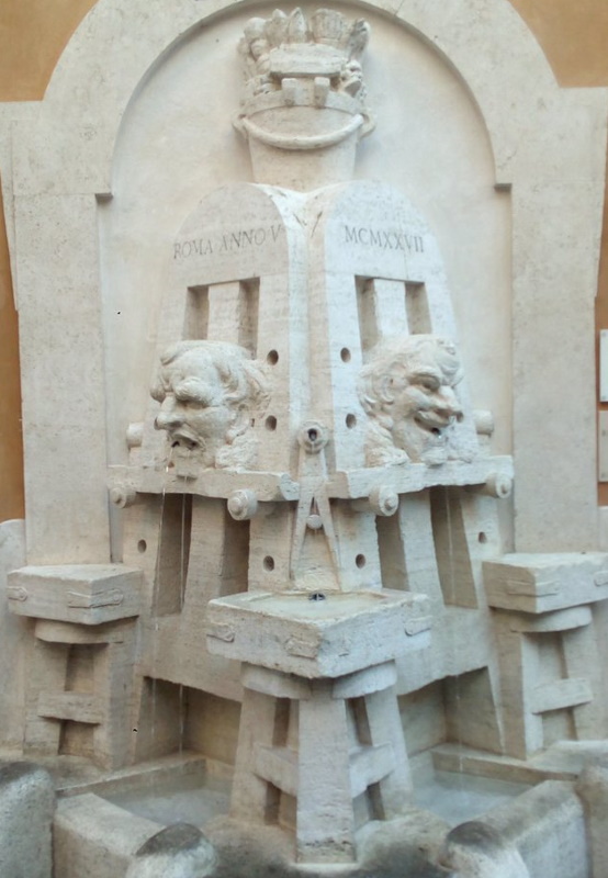 Situata lungo via Margutta, nel Rione Campo Marzio, la fontana richiama la vocazione artistica dell'area che già dal 1612, anno in cui il pittore Gentileschi vi installò il suo atelier, è luogo di residenza privilegiato di pittori, scultori, scrittori e artisti di ogni nazionalità. Un insolito sovrapporsi di cavalletti, maschere, compassi e sgabelli, e un secchio che contiene pennelli e martelli da scultore di varie forme e grandezze, raffigurano il corredo dell’artista. I due mascheroni, uno triste e uno felice, invece, ne rappresentano l’umore altalenante.