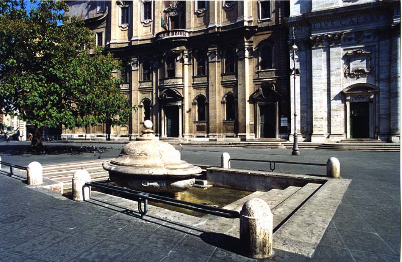 Voluta dal pontefice Gregorio XII, porta la firma dell’architetto e scultore Giacomo Della Porta autore, tra l’altro, anche della Fontana delle Tartarughe in piazza Mattei, della Fontana del Moro e di quella del Nettuno, collocate a destra e a sinistra della celebre Fontana dei Quattro Fiumi di Bernini. Oggi si trova davanti alla Chiesa Nuova, in corso Vittorio Emanuele II, non distante da piazza Navona, ma la sua storia comincia al centro di piazza Campo de’ Fiori, dove era stata originariamente collocata nel 1595. La fontana, a forma ovale, era decorata con quattro delfini in bronzo posti sui bordi della vasca, dalle cui bocche sgorgava l’acqua dell’acquedotto Vergine. I delfini erano stati inizialmente destinati alla Fontana delle Tartarughe, ma non furono mai utilizzati. Già allora, nella piazza si svolgeva un affollato e pittoresco mercato, e la fontana si trasformò ben presto in una sorta di vasca all’aperto in cui tenere al fresco e lavare frutta e verdura. A poco servirono gli editti papali, che prevedevano addirittura per i trasgressori recidivi pene corporali. Nel 1622, l’amministrazione cittadina cercò di correre ai ripari commissionando a un artista rimasto ignoto un grosso coperchio di travertino. Nello stesso anno furono tolti anche i delfini di cui col tempo si persero le tracce. Il grosso coperchio ispirò, inevitabilmente, l’ironia dei romani che ribattezzarono la fontana “Pasticcio” e poi “Terrina”, per la sua somiglianza con una grande zuppiera. La Terrina ebbe i suoi momenti di grandissima popolarità quando, in occasione di alcune feste, dalle sue bocchette, invece dell’acqua sprizzava l’ottimo vino bianco o rosso dei Castelli. Oggi, la fontana sfugge quasi all’attenzione di chi passa nella piazza, così come la singolare iscrizione che l’anonimo realizzatore del coperchio pose quasi come filosofico memento: “Ama Dio e non fallire, fa del bene e lassa dire. MDCXXII“.